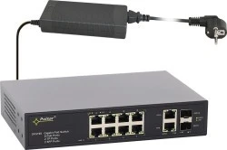 Switch PoE 12-portowy SFG108 do 8 kamer IP Przeznaczenie SFG108 to 12-portowy switch PoE przeznaczony do zasilania kamer IP pracujących w standardzie 802.3af/at. Switch na portach od 1 do 8 posiada funkcję automatycznej detekcji urządzeń zasilanych w standardzie PoE/PoE+. Typ switcha standard Zasilanie 100 - 240 V AC desktop: 120W/2.3A Porty 12 Porty PoE RJ45 8 x 1 Gb/s - IEEE 802.3af/at, PoE+ 52V DC, 30W/port, 110W/wszystkie porty UPLINK Porty RJ45 2 x 1 Gb/s - TP/9, TP/10 UPLINK Gniazda SFP 2 x 1 Gb/s - SFP/11, SFP12 Wymiary montażowe 1U Wymiary 220 x 44 x 150 [+/-2 mm] Montaż standard / RACK 19" Sygnalizacja sygnalizacja optyczna LED Gwarancja 2 lata Uwagi - w zestawie dwie blachy mocujące do podłoża, uchwyt do RACK 19”