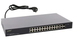 Switch PoE 24-portowy SFG124 do 24 kamer IP Przeznaczenie SFG124 to 24-portowy switch PoE przeznaczony do zasilania kamer IP pracujących w standardzie IEEE 802.3af/at. Switch na portach od 1 do 24 posiada funkcję automatycznej detekcji urządzeń zasilanych w standardzie PoE/PoE+. Typ switcha standard Zasilanie 100 - 240 V AC Porty 28 Porty PoE RJ45 24 x 1 Gb/s - IEEE 802.3af/at, PoE+ 52V DC, 30W/port, 240W/wszystkie porty UPLINK Porty RJ45 2 x 1 Gb/s - TP/25, TP/26 UPLINK Gniazda SFP 2 x 1 Gb/s - SFP/27, SFP28 Wymiary montażowe 1U Wymiary 442 x 44 x 290 [+/-2 mm] Montaż standard / RACK 19" Sygnalizacja sygnalizacja optyczna LED Gwarancja 2 lata Uwagi - dodatkowe elementy montażowe – uchwyt do RACK
