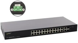 Switch PoE 24-portowy SFG124WP bez zasilacza do 24 kamer IP Przeznaczenie SFG124WP to 24-portowy switch PoE przeznaczony do zasilania kamer IP pracujących w standardzie IEEE 802.3af/at. Switch na portach od 1 do 24 posiada funkcję automatycznej detekcji urządzeń zasilanych w standardzie PoE/PoE+. Typ switcha standard Zasilanie 48 - 54 V DC, rozłączne gniazdo zasilania brak zasilacza w komplecie Porty 28 Porty PoE RJ45 24 x 1 Gb/s - IEEE 802.3af/at, PoE+ 48÷54V DC, 30W/port, 360W/wszystkie porty UPLINK Porty RJ45 2 x 1 Gb/s - TP/25, TP/26 UPLINK Gniazda SFP 2 x 1 Gb/s - SFP/27, SFP28 Wymiary montażowe 1U Wymiary 442 x 44 x 224 [+/-2 mm] Montaż standard / RACK 19" Sygnalizacja sygnalizacja optyczna LED Gwarancja 2 lata Uwagi - dodatkowe elementy montażowe – uchwyt do RACK