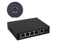 Switch PoE 6-portowy SFG64F1WP bez zasilacza do 4 kamer IP Przeznaczenie SFG64F1WP to 6-portowy switch PoE przeznaczony do zasilania kamer IP pracujących w Standardzie IEEE 802.3af/at. Switch na portach od 1 do 4 posiada funkcję automatycznej detekcji urządzeń zasilanych w standardzie PoE/PoE+. Typ switcha standard Zasilanie 48 - 57 V DC, gniazdo DC5,5/2,1 brak zasilacza w komplecie Porty 6 Porty PoE RJ45 4 x 1 Gb/s - IEEE 802.3af/at, PoE+ 48÷57V DC, 30W/port, 60W/wszystkie porty UPLINK Porty RJ45 1 x 1 Gb/s UPLINK Gniazda SFP 1 x 1 Gb/s - SFP Wymiary 118 x 28 x 95 [+/-2 mm] Montaż standard Sygnalizacja sygnalizacja optyczna LED Gwarancja 2 lata Uwagi - w zestawie blachy mocujące switcha do podłoża