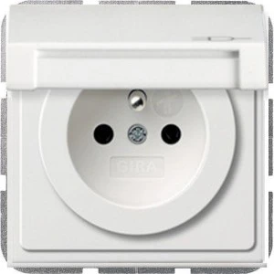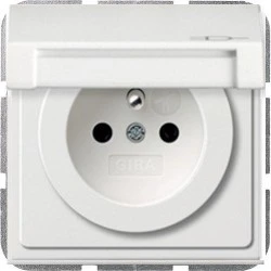 GIRA F100 Gniazdo z bolcem ochronnym i klapką IP44 z przesłonami torów prądowych biały połysk