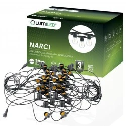 Solidny i odporny na warunki atmosferyczne trzonek girlandy ogrodowej umożliwia montaż żarówek E27 zapewniając niezawodne i dekoracyjne oświetlenie. Mocna izolacja przewodu zapewnia bezpieczeństwo podczas użytkowania na zewnątrz, chroniąc instalację przed wilgocią i uszkodzeniami mechanicznymi. Jest to doskonałe rozwiązane do ogrodów, tarasów, balkonów, a także przestrzeni komercyjnych, tj. restauracje czy kawiarnie.