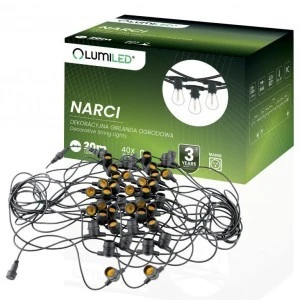Girlanda świetlna, łańcuch o długości 20m z oprawkami na żarówkę co 500cm posiada popularny gwint E27, dzięki czemu sam zdecydujesz o efekcie świetlnym. Girlanda pięknie prezentuje się w ogrodzie, może również stanowić główne źródło światła naszej altany. Odpowiednie rozstawienie świateł w prezentowanej girlandzie oświetleniowej stworzy niezwykłą atmosferę, a zarazem świetnie sprawdzi się podczas wieczornych imprez plenerowych, jak i na co dzień podczas spokojnych wieczorów spędzanych na tarasie.