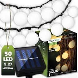 Girlanda solarna SOLIX znanej i renomowanej w branży oświetleniowej marki Lumiled to idealny wybór dla tych, którzy cenią eleganckie i ekologiczne oświetlenie przestrzeni zewnętrznych. Ciepłe białe światło o temperaturze barwowej 3000K, emitowane przez 50 delikatnych diod LED, tworzy przytulną atmosferę, idealną do dekoracji ogrodu, tarasu, balkonu czy altany. Energooszczędne oświetlenie solarne sprawia, że girlanda ładuje się w ciągu dnia i świeci po zmroku bez potrzeby podłączenia do prądu. Plastikowe, mleczne kulki o średnicy 2,3cm równomiernie rozprowadzają światło.