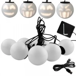Girlanda w kolorze białym została wykonana z wysokiej jakości materiałów. Jej całkowita długość wynosi 4,33m, znajduje się na niej 8 kulek z czterema różnymi buźkami. Średnica jednej kulki ma 7cm.