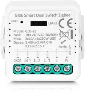 Gise SMART Dual Switch - podwójny przekaźnik oświetleniowy Zigbee kompatybilny z aplikacją TUYA