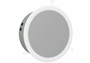 Głośnik sufitowy PA, posiadający certyfikat EN 54-24, do systemów głośnikowych A/B, zgodnych z normą EN 60849 oraz DIN VDE 0833-4. · Technika 100V, 3 odczepy mocy · 2 niezależne głośniki pełnopasmowe (10cm) o wysokiej efektywności · Metalowa obudowa z maskownicą · Osłona przeciwpożarowa · Szybki montaż · Terminale połączeniowe WAGO · Odporny na uderzenia piłką, zgodnie z DIN 18 032, part 3 Technika 100 V Pasmo przenoszenia 80-20 000 Hz Moc znamionowa RMS 2 x 10/5/2.5 W Skuteczność 2 x 92 dB (1 W/1 m) 76 dB (EN, 1 W/4 m) Max SPL 2 x 102 dB (1 m) 87 dB (EN, 4 m) Kąt promieniowania w poziomie 180° (500 Hz) 180° (1 kHz) 160° (2 kHz) 80° (4 kHz) Kąt promieniowania w pionie 180° (500 Hz) 180° (1 kHz) 160° (2 kHz) 80° (4 kHz) Otwór montażowy Ø 230 mm Wymiary Ø 252 mm x 105 mm Średnica zewnętrzna Ø 252 mm Szerokość Ø 252 mm Wysokość Ø 252 mm Głębokość 105 mm Kolor White, RAL 9010 Waga 1.7 kg Ilość 1 Typ głośnika 200 Wymiary opakowania (S x W x D) 0.27 x 0.27 x 0.115 m Waga brutto 1.7 kg Waga netto 1.6 kg Waga netto 1.6 kg