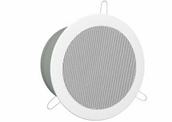 Głośnik sufitowy PA posiadający certyfikat EN 54-24. · Technika 100V, 3 odczepy mocy · Głośnik pełnopasmowy (13cm), optymalne przenoszenie pasma mowy · Membrana odporna na wilgoć · Osłona przeciwpożarowa · Szybki montaż · Metalowa obudowa z maskownicą · Terminale połączeniowe WAGO · Odporny na uderzenia piłką zgodnie z DIN 18 032, part 3 Technika 100 V Pasmo przenoszenia 80-19 000 Hz Moc znamionowa RMS 10/5/2.5 W Skuteczność 93 dB (1 W/1 m) 78 dB (EN, 1 W/4 m) Max SPL 103 dB (1 m) 88 dB (EN, 4 m) Kąt promieniowania w poziomie 180° (500 Hz) 180° (1 kHz) 155° (2 kHz) 76° (4 kHz) Kąt promieniowania w pionie 180° (500 Hz) 180° (1 kHz) 155° (2 kHz) 76° (4 kHz) Otwór montażowy Ø 140-150 mm Wymiary Ø 167 mm x 90 mm Średnica zewnętrzna Ø 167 mm Szerokość Ø 167 mm Wysokość Ø 167 mm Głębokość 90 mm Kolor biały, RAL 9010 Klasa szczelności IP54 Waga 1.1 kg Ilość 1 Typ głośnika 130 Wymiary opakowania (S x W x D) 0.187 x 0.187 x 0.090 m Waga brutto 1.2 kg Waga netto 1.1 kg Waga netto 1.1 kg