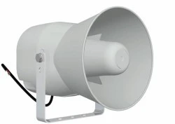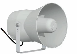 Głośnik tubowy, odporny na warunki atmosf. · Technika 100V, odczepy mocy 6/3/1.5W · Wbudowany filtr górnoprzepustowy dla poprawy brzmienia · Odpowiedni do emisji mowy oraz tła muzycznego · Odporny na silny strumień wody, IP65 · Biała obudowa z tworzywa ABS, samogasnącego, zgodność z normą UL94V0 · 4-żyłowy kabel połączeniowy (0.6m) · W komplecie uchwyt montażowy Aktywny/pasywny pasywny Technika 100 V Moc całkowita 6 W Pasmo przenoszenia 500-13 000 Hz Liczba przetworników 1 Skuteczność 106 dB/W/m Max SPL 114 dB Kąt promieniowania 90° Kąt promieniowania w poziomie 90° Kąt promieniowania w pionie 90° Dopuszcz. temp. otoczenia -40 °C do +70 °C Szerokość Ø 130 mm Wysokość Ø 130 mm Głębokość 175 mm Waga 1.4 kg Waga brutto 1.5 kg Waga netto 1.4 kg Waga netto 1.4 kg