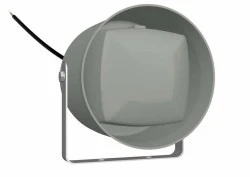 Kompaktowy głośnik tubowy, 4Ω, do emisji komunikatów np. w systemach alarmowych. · Bardzo wysoka skuteczność (100dB/1W/1m) · Dzięki klasie szczelności IP69k, odpowiedni do zastosowań w pociągach, wozach strażackich i stacjach alarmowych · Jasnoszara obudowa z tworzywa PC/ABS, samogasnącego, zgodność z normą UL94V0 · 2-żyłowy kabel połączeniowy (długość: 0.6m) · W komplecie uchwyt montażowy Aktywny/pasywny pasywny Technika przewodowa Moc znamionowa RMS 10 W Impedancja 4 Ω Pasmo przenoszenia 250-20 000 Hz Liczba przetworników 1 Skuteczność 100 dB/W/m Max SPL 109 dB Kąt promieniowania 150° Kąt promieniowania w poziomie 150° Kąt promieniowania w pionie 150° Dopuszcz. temp. otoczenia -40 °C to +110 °C Szerokość Ø 97 mm Wysokość Ø 97 mm Głębokość 102 mm Waga 0.5 kg Waga brutto 0.6 kg Waga netto 0.5 kg Waga netto 0.5 kg