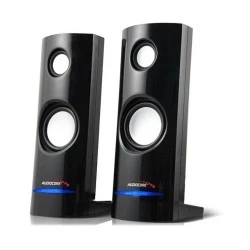 Wysokiej jakości stereofoniczne głośniki do notebooków i komputerów stacjonarnych. Gwarantują czyste i naturalne brzmienie dźwięku. Elegancki wygląd sprawia, że doskonale komponują się na biurku z monitorami LCD i innymi akcesoriami. Współpracują ze wszystkimi komputerami posiadającymi wyjście głośnikowe i wyjście USB. Elegancka i nowoczesna, odporna na zarysowania obudowa.