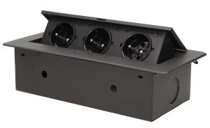Gniazda wpuszczane w blat 3x250V AC z płaskim rantem czarne OR‑AE‑1371/B