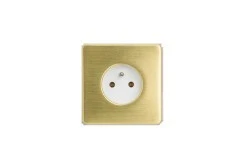 Gniazdko elektryczne białe pojedyncze ramka stal szczotkowana PVD Brass GN‑SNPBR01B