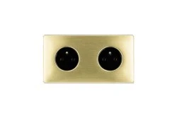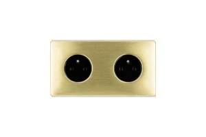 Gniazdko elektryczne czarne podwójne ramka stal szczotkowana PVD Brass GN‑SNPBR02C