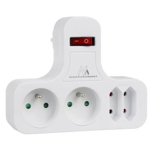 Gniazdko prądowe Maclean, Poczwórne z wyłącznikiem, Nóżką stabilizującą, Typu E, 2x2,5A, 2x16A, MCE224