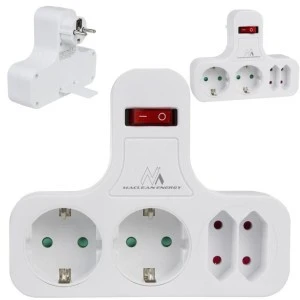 Prezentowany rozgałęźnik marki Maclean odpowiedzialny jest za możliwość powiększenia liczby dostępnych gniazdek elektrycznych, umożliwiająć podłączenie większej ilości urządzeń. Rozgałęźnik wyposażony jest w cztery gniazda - 2 płaskie oraz 2 typu Schuko. Na szczycie rozgałęźnika znajduje się włącznik/wyłącznik ON/OFF. Nóżka znajdująca się z tyłu rozgałęźnika odpowiada za stabilizację.