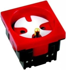 Gniazdo zasilające z/u 16A 250V~ w standardzie mosaic 45x45mm, z blokadą (DATA), z uziemieniem. Gniazdo elektryczne pojedyncze z uziemieniem i blokadą (czerwone) 2P+Z. Montaż przez zatrzaśnięcie na uchwycie szybkiego montażu UCHKP (do kanałów kablowych), obudowie natynkowej OBUK, ramce maskującej RAMK. W komplecie znajduje się zwalniacz blokady.