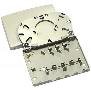 Gniazdo plastikowe natynkowe - puszka abonencka przeznaczona do montażu naściennego wewnątrz budynków. Umożliwia zakończenie włókien światłowodowych i instalację czterech adapterów SC simplex (lub LC duplex).