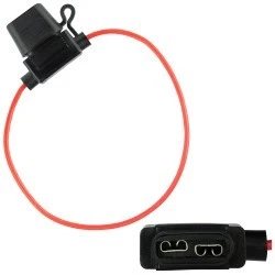 Oprawka na bezpiecznik samochodowy, stosowana do zabezpieczenia instalacji samochodowej, np. wzmacniacza lub radia. Gniazdo pasuje do standardowych bezpieczników płytkowych, nożowych MIDI używanych w samochodach.