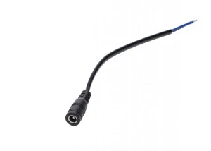 Przewód (tzw. pigtail) ułatwia lutowanie lub łączenie z instalacją w puszce/obudowie. Przed montażem upewnij się, że Twoje urządzenie wykorzystuje rozmiar 5.5×2.1 mm (spotykany jest też wariant 5.5×2.5 mm). Dla bezpieczeństwa zachowaj poprawną polaryzację zgodnie z podłączanym zasilaczem/urządzeniem.