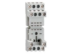 Gniazda do przekaźników (bez obejmy wyrzutnikowej/sprężynowej) do montażu na szynie DIN lub śrubami. Zaciski śrubowe. Na gniazdach można zamontować filtr przeciwzakłóceniowy i tabliczki opisowe.