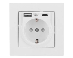Gniazdo podtynkowe z uziemieniem typu Schuko wyposażone jest w przesłony torów prądowych – takie zaślepki uniemożliwią włożenie do gniazdka innych przedmiotów niż wtyczka. Do gniazda można podłączyć różne urządzenia elektryczne o napięciu 250 V.