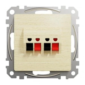 Gniazdo głośnikowe podwójne, brzoza, efekt drewna, to osprzęt serii Sedna Design & Elements marki Schneider Electric. Gniazdo głośnikowe podwójne ma satynowe wykończenie powierzchni w kolorze brzoza i posiada następujące wymiary: szerokość 73 mm, wysokość 73 mm, głębokość 52 mm, głębokość wystawania 31 mm. Długość izolacji zdejmowanej z kabla to 7 mm. Gniazdo charakteryzuje się stopniem ochrony IP20. Do produkcji gniazda wykorzystano tworzywo termoplastyczne o zwiększonej odporności na promieniowanie UV, które doskonale imituje naturalne materiały. Produkt jest montowany podtynkowo i posiada zaciski bezśrubowe. Uwaga: produkty Sedna Design & Elements nie są kompatybilne z serią Sedna!