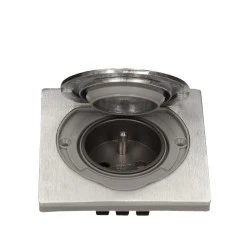 Gniazdo sieciowe z uziemieniem i przesłonami torów prądowych, w hermetycznej obudowie, do montażu w standardowej puszce elektrycznej Ø60 mm.