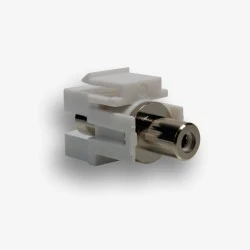 Gniazdo keystone RCA żeńskie (z obu stron), potocznie cinch, można montować w adapterach typu keystone o wymiarach (wys x szer) 16,10x14,50 mm np. w adapterach do gniazd 45x45, ramkach osprzętu elektrycznego, panelach modularnych itp. Przeznaczone do zastosowania w systemach teleinformatycznych, audio/video, TV itp.