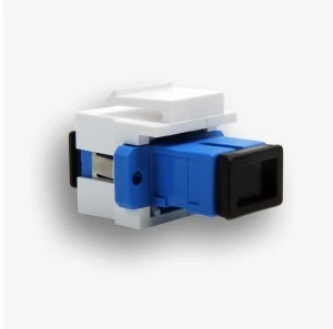 Gniazdo keystone SC simplex żeńskie (z obu stron) można montować w adapterach typu keystone o wymiarach (wys x szer) 16,10x14,50 mm np. w adapterach do gniazd 45x45, ramkach osprzętu elektrycznego, panelach modularnych itp. Wyposażone w zaślepki. Przeznaczone do zastosowania w systemach teleinformatycznych itp.