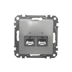 Gniazdo komputerowe podwójne RJ45 kat. 5e STP, srebrne aluminium, to osprzęt serii Sedna Design & Elements marki Schneider Electric. Gniazdo komputerowe ma lśniące wykończenie powierzchni w kolorze srebrnego aluminium i posiada następujące wymiary: szerokość 73 mm, wyso kość 73 mm, głębokość 37 mm, głębokość wystawania 13 mm. Gniazdo charakteryzuje się stopniem ochrony IP20. Do produkcji gniazda wykorzystano tworzywo termoplastyczne o zwiększonej odporności na promieniowanie UV. Produkt jest montowany podtynkowo. Uwaga: produkty Sedna Design & Elements nie są kompatybilne z serią Sedna!