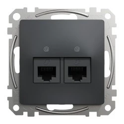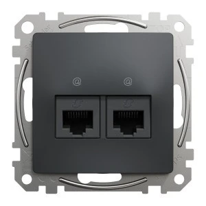 Gniazdo komputerowe podwójne RJ45 kat. 5e UTP, czarny antracyt, to osprzęt serii Sedna Design & Elements marki Schneider Electric. Gniazdo komputerowe ma lśniące wykończenie powierzchni w kolorze czarnego antracytu i posiada następujące wymiary: szerokość 73 mm, wysokość 73 mm, głębokość 37 mm, głębokość wystawania 13 mm. Gniazdo charakteryzuje się stopniem ochrony IP20. Do produkcji gniazda wykorzystano tworzywo termoplastyczne o zwiększonej odporności na promieniowanie UV. Produkt jest montowany podtynkowo. Uwaga: produkty Sedna Design & Elements nie są kompatybilne z serią Sedna!