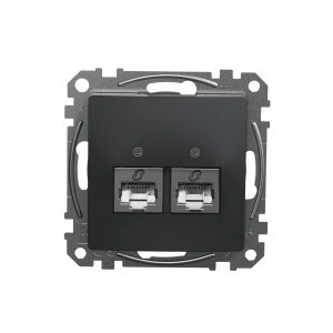 Gniazdo komputerowe podwójne RJ45 kat. 6 STP, czarny antracyt, to osprzęt serii Sedna Design & Elements marki Schneider Electric. Gniazdo komputerowe ma lśniące wykończenie powierzchni w kolorze czarnego antracytu i posiada następujące wymiary: szerokość 73 mm, wysokość 73 mm, głębokość 37 mm, głębokość wystawania 13 mm. Gniazdo charakteryzuje się stopniem ochrony IP20. Do produkcji gniazda wykorzystano tworzywo termoplastyczne o zwiększonej odporności na promieniowanie UV. Produkt jest montowany podtynkowo. Uwaga: produkty Sedna Desi gn & Elements nie są kompatybilne z serią Sedna!
