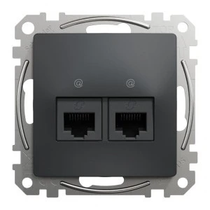 Gniazdo komputerowe podwójne RJ45 kat. 6 UTP, czarny antracyt, to osprzęt serii Sedna Design & Elements marki Schneider Electric. Gniazdo komputerowe ma lśniące wykończenie powierzchni w kolorze czarnego antracytu i posiada następujące wymiary: szerokość 73 mm, wysokość 73 mm, głębokość 37 mm, głębokość wystawania 13 mm. Gniazdo charakteryzuje się stopniem ochrony IP20. Do produkcji gniazda wykorzystano tworzywo termoplastyczne o zwiększonej odporności na promieniowanie UV. Produkt jest montowany podtynkowo. Uwaga: produkty Sedna Design & Elements nie są kompatybilne z serią Sedna!