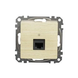 Gniazdo komputerowe RJ45 kat. 5e UTP, brzoza, efekt drewna, to osprzęt serii Sedna Design & Elements marki Schneider Electric. Gniazdo komputerowe ma lśniące wykończenie powierzchni w kolorze brzoza i posiada następujące wymiary: szerokość 73 mm, wysokość 73 mm, głębokość 35 mm, głębokość wystawania 13 mm. Gniazdo charakteryzuje się stopniem ochrony IP20. Do produkcji gniazda wykorzystano tworzywo termoplastyczne o zwiększonej odporności na promieniowanie UV, które doskonale imituje naturalne materiały. Produkt jest montowany podtynkowo. Uwaga: produkty Sedna Design & Elements nie są kompatybilne z serią Sedna!
