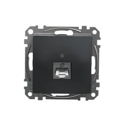 Gniazdo komputerowe RJ45 kat. 6 STP, czarny antracyt, to osprzęt serii Sedna Design & Elements marki Schneider Electric. Gniazdo komputerowe ma lśniące wykończenie powierzchni w kolorze czarnego antracytu i posiada następujące wymiary: szerokość 73 mm, wysokość 73 mm, g łębokość 35 mm, głębokość wystawania 13 mm. Gniazdo charakteryzuje się stopniem ochrony IP20. Do produkcji gniazda wykorzystano tworzywo termoplastyczne o zwiększonej odporności na promieniowanie UV. Produkt jest montowany podtynkowo. Uwaga: produkty Sedna Design & Elem ents nie są kompatybilne z serią Sedna!
