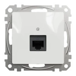 Gniazdo komputerowe RJ45 kat. 6 UTP, białe, to osprzęt serii Sedna Design & Elements marki Schneider Electric. Gniazdo komputerowe ma lśniące wykończenie powierzchni w kolorze białym i posiada następujące wymiary: szerokość 73 mm, wysokość 73 mm, głębokość 35 mm, głębokość wystawania 13 mm. Gniazdo charakteryzuje się stopniem ochrony IP20. Do produkcji gniazda wykorzystano tworzywo termoplastyczne o zwiększonej odporności na promieniowanie UV. Produkt jest montowany podtynkowo. Uwaga: produkty Sedna Design & Elements nie są kompatybilne z serią Sedna!