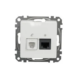 Gniazdo komputerowe-telefoniczne (kat. 5e UTP), białe, to osprzęt serii Sedna Design & Elements marki Schneider Electric. Gniazdo komputerowe-telefoniczne ma lśniące wykończenie powierzchni w kolorze białym i posiada następujące wymiary: szerokość 73 mm, wysokość 73 mm , głębokość 37 mm, głębokość wystawania 13 mm. Gniazdo charakteryzuje się stopniem ochrony IP20. Do produkcji gniazda wykorzystano tworzywo termoplastyczne o zwiększonej odporności na promieniowanie UV. Produkt jest montowany podtynkowo. Uwaga: produkty Sedna Design & E lements nie są kompatybilne z serią Sedna!