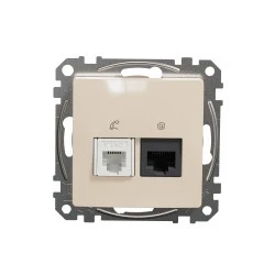 Gniazdo komputerowe-telefoniczne (kat. 6 UTP), beżowy, to osprzęt serii Sedna Design & Elements marki Schneider Electric. Gniazdo komputerowe-telefoniczne ma lśniące wykończenie powierzchni w kolorze beżowym i posiada następujące wymiary: szerokość 73 mm, wysokość 73 mm , głębokość 37 mm, głębokość wystawania 13 mm. Gniazdo charakteryzuje się stopniem ochrony IP20. Do produkcji gniazda wykorzystano tworzywo termoplastyczne o zwiększonej odporności na promieniowanie UV. Produkt jest montowany podtynkowo. Uwaga: produkty Sedna Design & E lements nie są kompatybilne z serią Sedna!