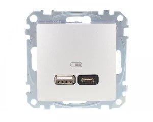 Gniazdo ładowania USB typ A+C 2,4A, srebrne aluminium, to osprzęt serii Sedna Design & Elements marki Schneider Electric. Gniazdo ładowania USB ma malowane wykończenie powierzchni w kolorze srebrnego aluminium i posiada następujące wymiary: szerokość 73 mm, wysokość 73 mm, głębokość 43 mm, głębokość wystawania 12 mm. Długość izolacji zdejmowanej z kabla to 8 mm. Gniazdo charakteryzuje się stopniem ochrony IP20. Do produkcji gniazda wykorzystano tworzywo termoplastyczne o zwiększonej odporności na promieniowanie UV. Produkt jest montow any podtynkowo. Uwaga: produkty Sedna Design & Elements nie są kompatybilne z serią Sedna!