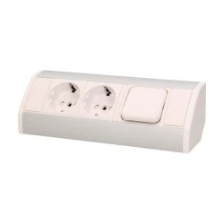 Gniazdo sieciowe z uziemieniem i przesłonami torów prądowych z wyłącznikiem, idealne do montażu w szafkach, gablotach i witrynach.