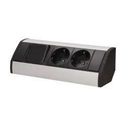 Gniazdo sieciowe z uziemieniem i przesłonami torów prądowych z wyłącznikiem, idealne do montażu w szafkach, gablotach i witrynach.