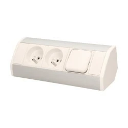 Gniazdo sieciowe z uziemieniem i przesłonami torów prądowych z wyłącznikiem, idealne do montażu w szafkach, gablotach i witrynach.