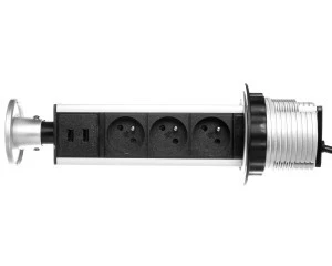 Gniazdo meblowe fi10cm, 3x250V AC wysuwane z blatu z przewodem 1,8m inox OR‑AE‑1352