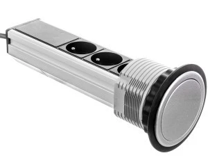 Gniazdo meblowe fi8cm, 3x250V AC wysuwane z blatu z przewodem 1,8m srebrne OR‑AE‑1355