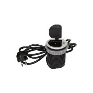 Gniazdo sieciowe z uziemieniem i przesłonami torów prądowych, połączone z ładowarką USB w obudowie chowanej w blat. Urządzenie przeznaczone do montażu w biurkach, blatach, stołach i narożnikach. Posiada dodatkową pokrywkę chroniącą gniazdo sieciowe przed kurzem oraz przewód o długości 1,8 m.