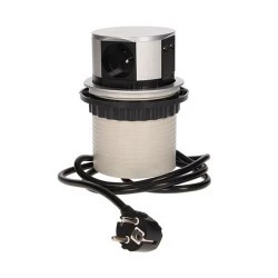 Jednym z produktów zaprojektowanych przez specjalistów jest dane tutaj gniazdo meblowe. Jest to model przeznaczony do wbudowania w blat, z późniejszą możliwością wysuwania. Urządzenie zostało wyposażone łącznie w cztery gniazda sieciowe z uziemieniem.Dodatkowo ten model wyposażono w dwa wejścia USB. Z cła pewnością w trakcie użytkowania tego modelu warto mieć na uwadze jego parametry elektryczne. Wartość napięcia znamionowego dla każdego z tych gniazd jest bowiem równa 230 V, a z kolei prąd znamionowy ma wartość 16 A. Warto również znać wymiary tego urządzenia. Długość przewodu zasilającego jest równa 1,5 metra. Szerokość gniazda wynosi 115 mm, długość ma 159 mm, a wysokość jest z kolei równa 47 mm. Średnica tego okrągłego modelu wynosi 115 mm.