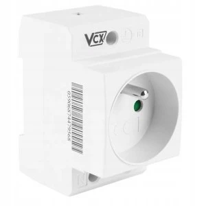 Gniazdo jednofazowe 230V, 16A z bolcem uziemiającym, na szynę TH35. Przeznaczone jest do podłączania zasilania urządzeń, oświetlenia itd.