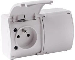 Gniazdo natynkowe podwójne z uziemieniem, z klapką VIPLAST KOALA BIAŁE IP44 162-01