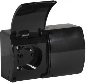 Gniazdo natynkowe podwójne z uziemieniem, z klapką VIPLAST KOALA CZARNE IP44 162-05